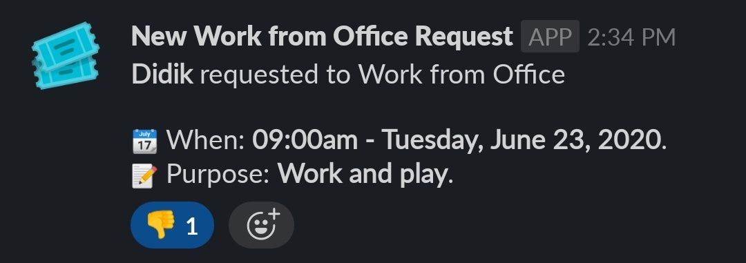 Setiap kali ada yang booking, akan muncul di Slack dalam channel privat kantor