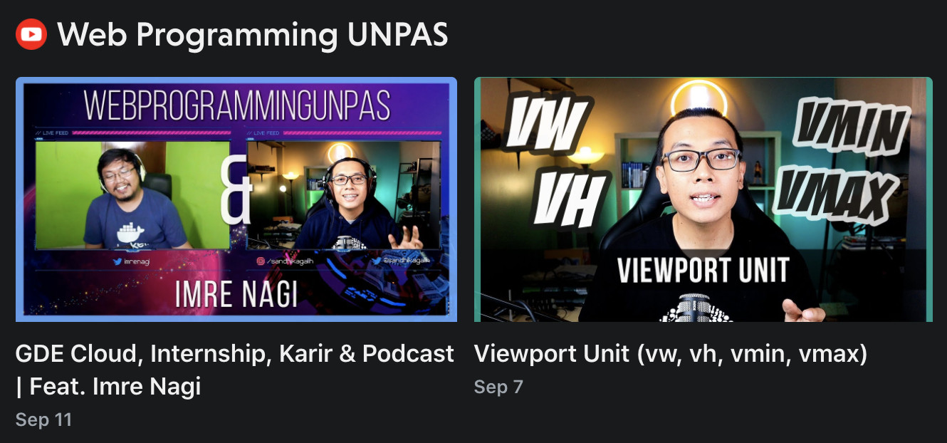 Minggu ini Sandhika menambahkan interview dengan Imre Nagi. Perjalanan karirnya sangat menginspirasi terutama bagi teman-teman yang masih bingung dalam kuliah. Selain itu, Padika (panggilan dari Sandhika) juga menerbitkan sebuah tutorial mengenai Viewport Unit di CSS.