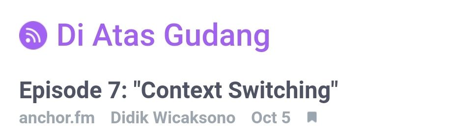 Sebagai developer kita rentan terhadap interupsi. Sedikit gangguan bisa menunda tugas yang sedang dikerjakan. Apa saja yang patut diketahui mengenai context switching? Saya mengulasnya dalam episode Di Atas Gudang minggu ini.