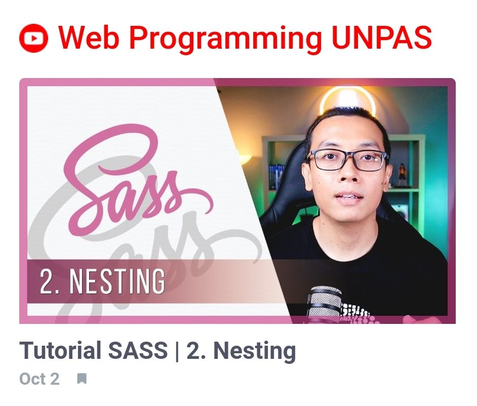 Salah satu fitur killer dari SASS adalah adanya syntax bersarang (nestinf) yang dapat mempersingkat penulisan CSS. Simak selengkapnya di video dari Sandhika Galih dalam Web Programming Unpas.