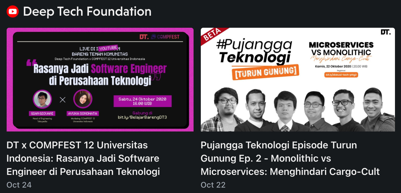Disclaimer: saya adalah salah satu narasumber dalam diskusi ini. Arsitektur monolithic dan microservice seringkali menuai perdebatan yang panas, diskusi yang satu ini juga tidak mau ketinggalan 😅. Ada banyak pesan penting di dalamnya, salah satunya adalah mengapa kita harus menghindari cargo-culting atau ikut-ikutan tren.