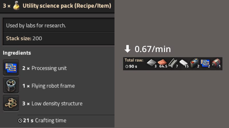 Bagan di atas adalah bagan untuk memproduksi sebuah komponen sains. Di Factorio komponen sains ini dibutuhkan untuk meriset teknologi, dengan kata lain ini adalah mata uang untuk menghasilkan teknologi. Player bisa membuatnya sendiri tanpa harus melalui assembler. Dalam semenit player bisa menghasilkan 0,62 dari komponen tersebut. Masalahnya, game ini membutuhkan player untuk menghasilkan ratusan komponen ini 😂, kita bisa saja membuatnya secara manual namun butuh waktu puluhan jam di dunia nyata.